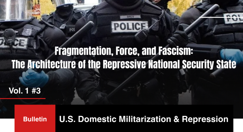 What we are witnessing in the United States today is not a series of isolated policy excesses or unfortunate “overreaches,” but the maturation of a coherent architecture of repression — a national security state that fuses intelligence, policing, militarization, and ideological discipline into a single system of control. This system is not reactive; it is proactive. It is not defensive; it is anticipatory. And it is not primarily about safety — it is about managing populations, suppressing dissent, and maintaining imperial order in a moment of systemic crisis fueling the consolidation of fascism.
